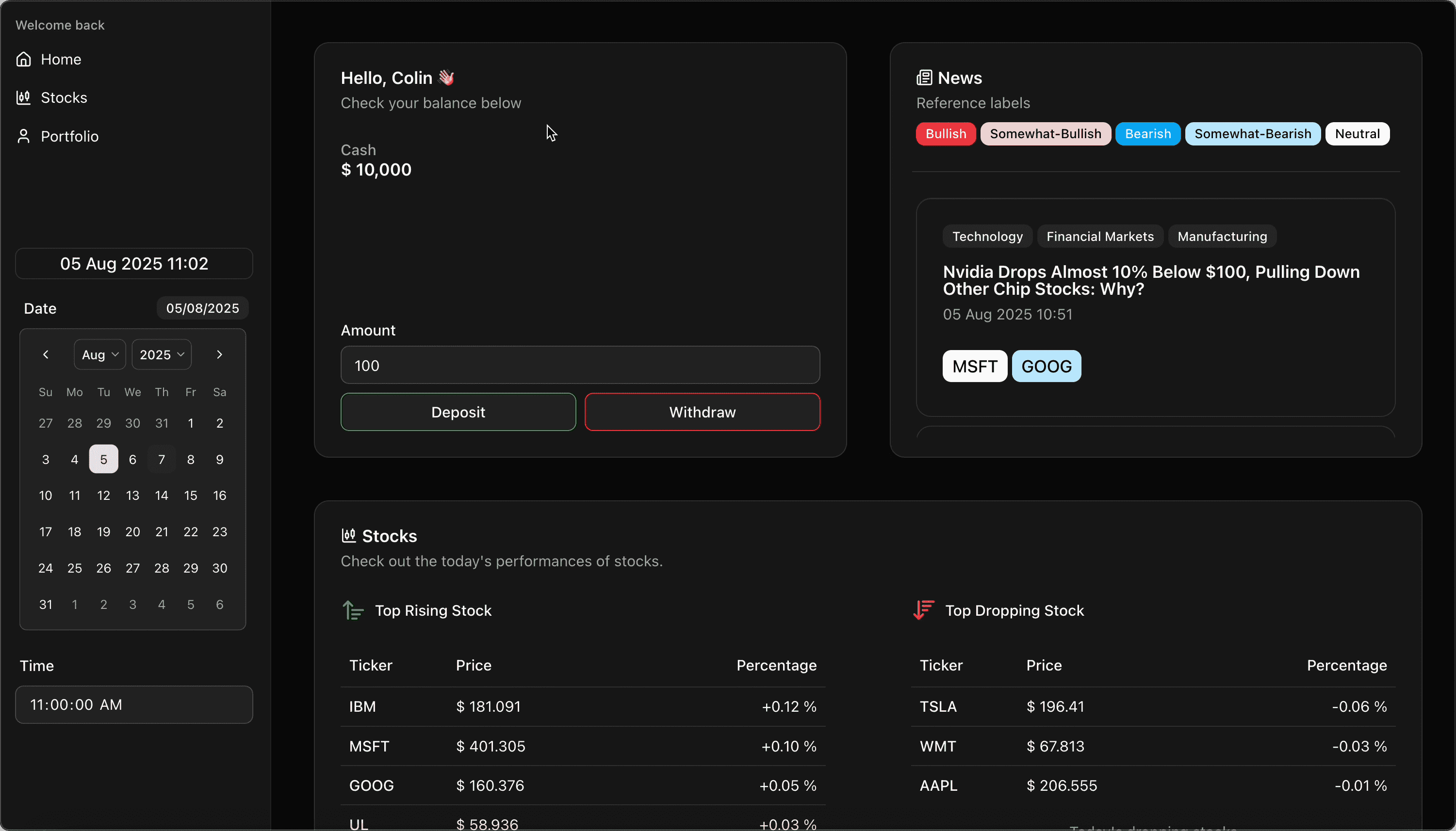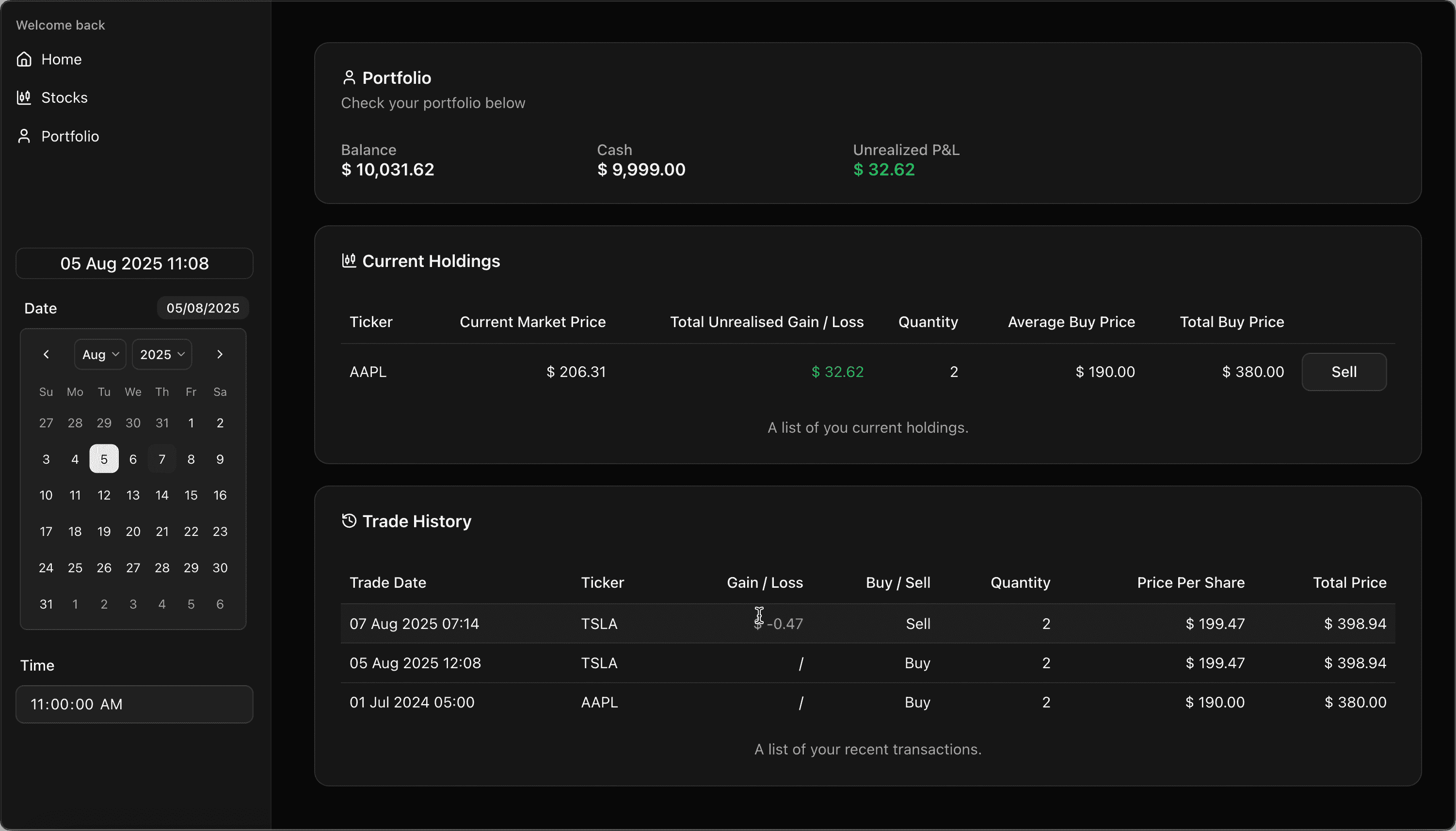 This is a group project from a course in the training program of Nomura, where we created a full-stack straight through processing system for users to mimic executing trades.