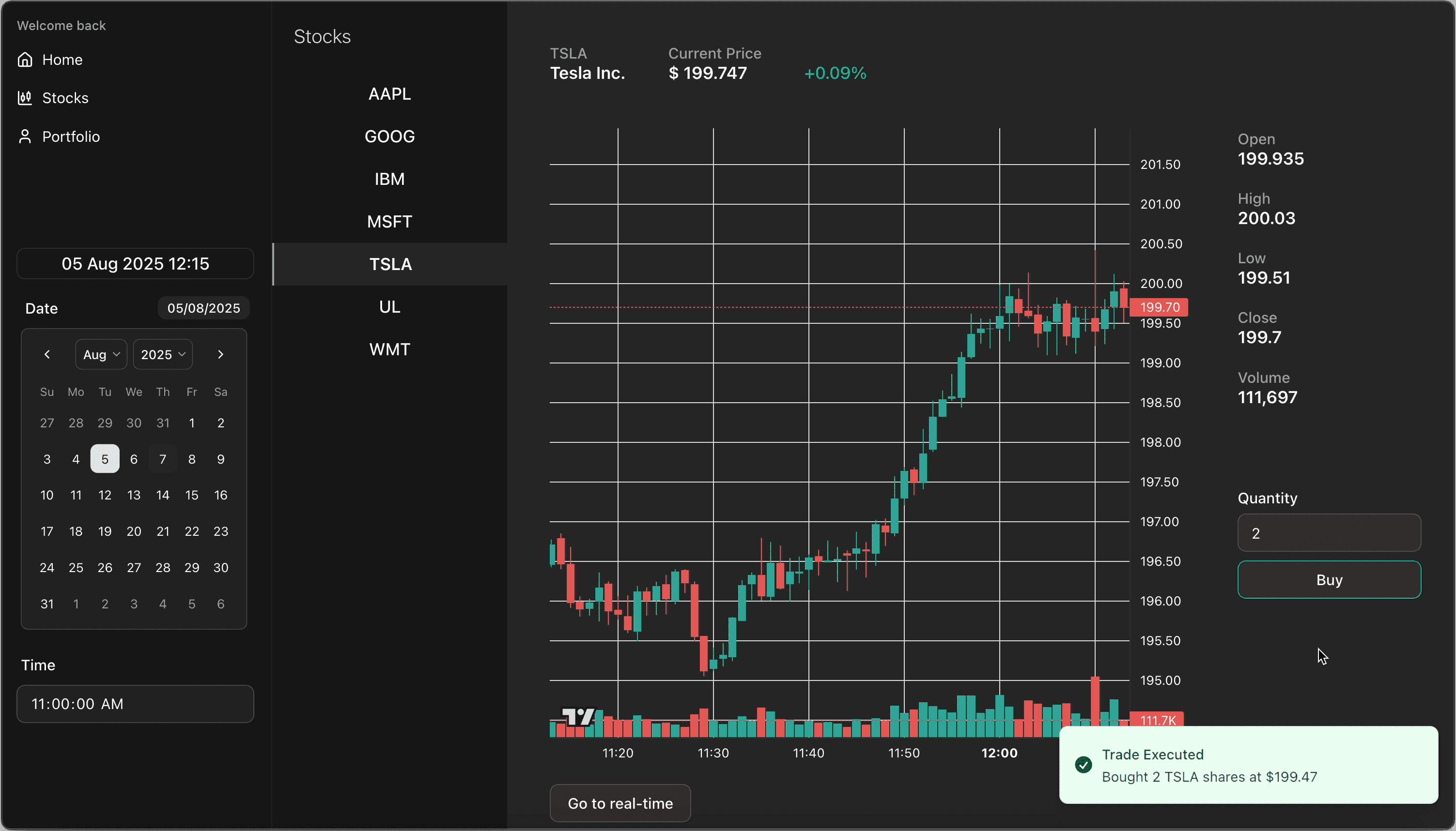 Because this is a simulation of the real market, users can also choose different time and date to simulate different point of time to view the market.